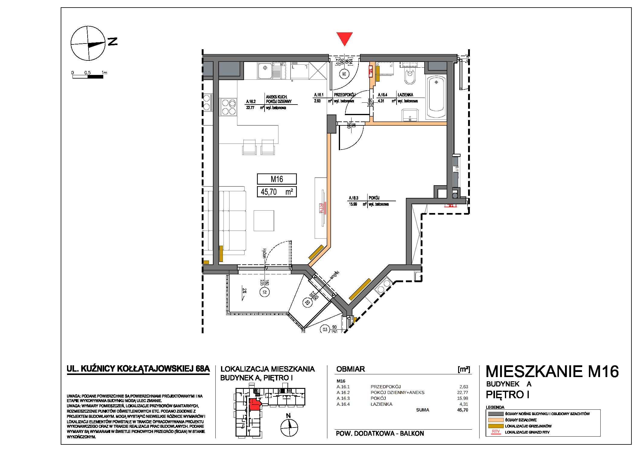| 68A | 16 | 1 | 2 | 45.7 m2 | 9600 zł | 438 720 zł | Wolne | ||