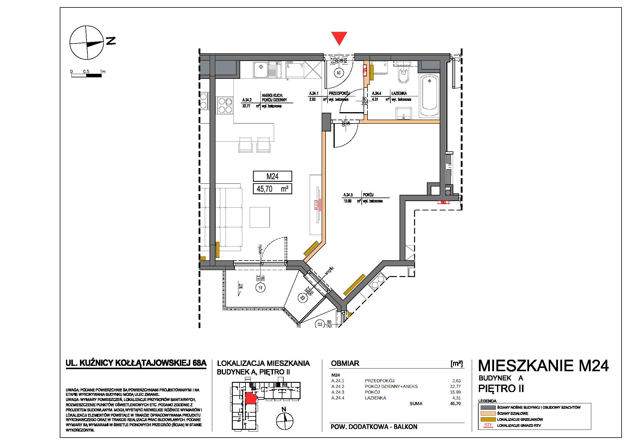 | 68A | 24 | 2 | 2 | 45.7 m2 | 9700 zł | 443 290 zł | Wolne | ||