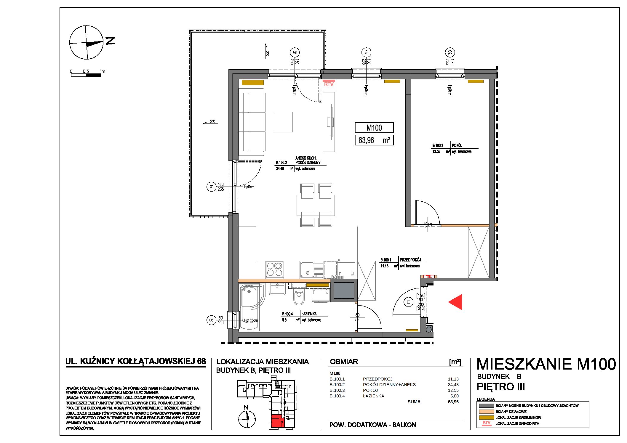 | 68 | 100 | 3 | 2 | 63.96 m2 | 9400 zł | 601 224 zł | Wolne |