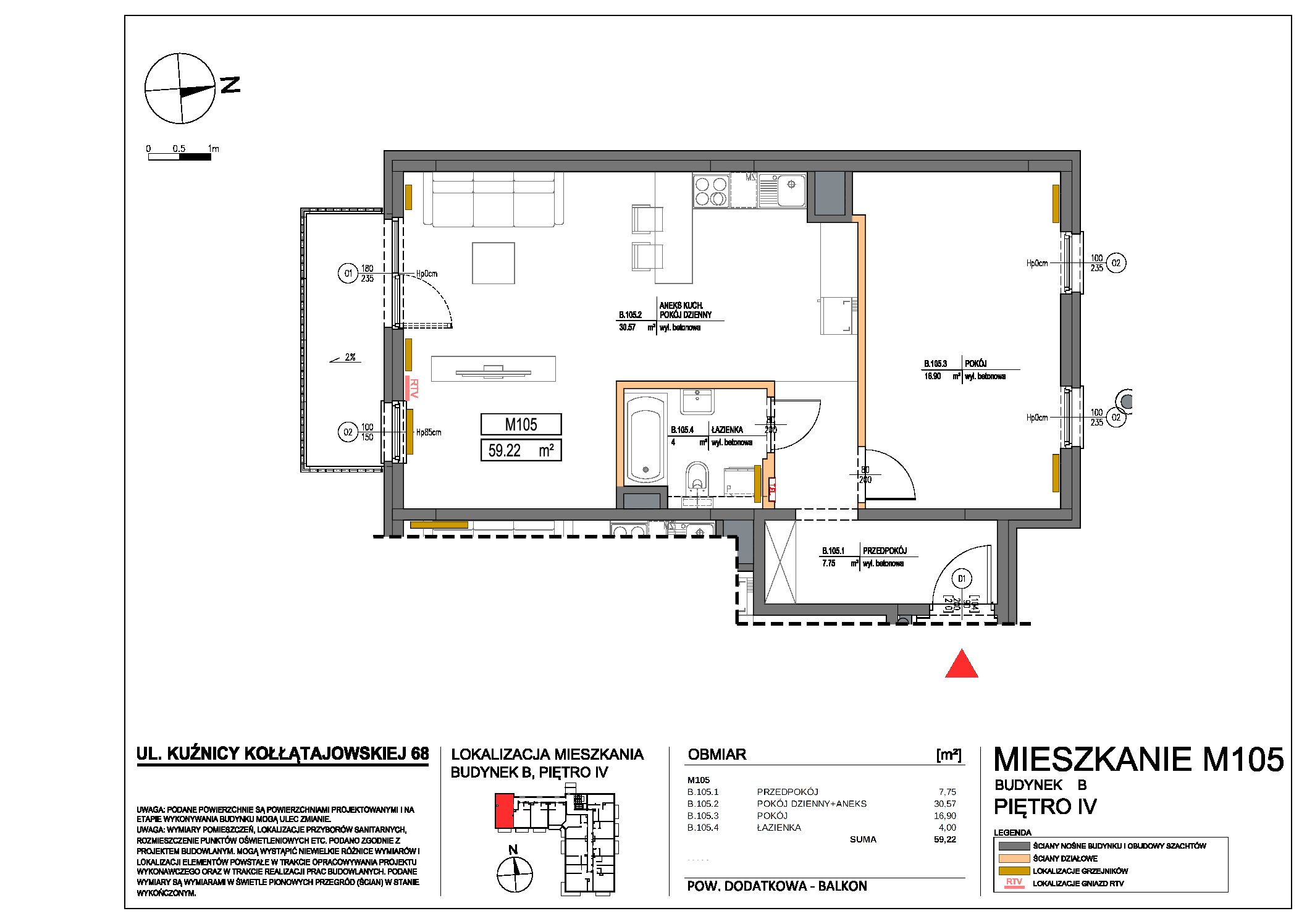 | 68 | 105 | 4 | 2 | 59.22 m2 | 9700 zł | 574 434 zł | Wolne | ||