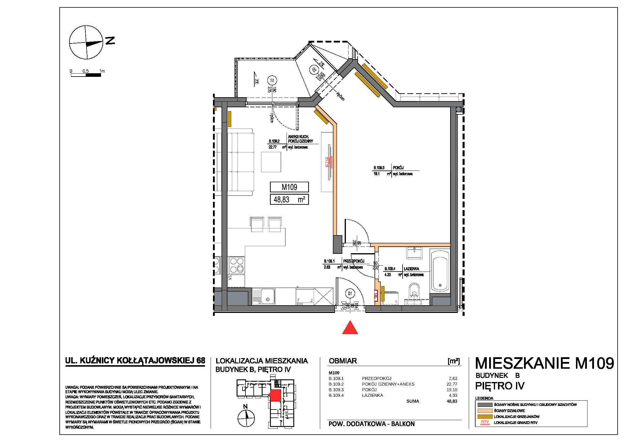 | 68 | 109 | 4 | 2 | 48.83 m2 | 10 000 zł | 488 300 zł | Wolne | ||